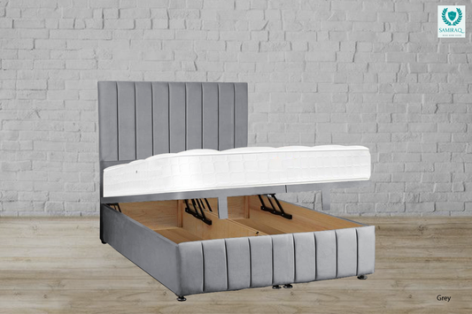 Samiraq Cascade Panel Bed with wooden gas lift storage & 12.5-Inch Sprung Orthopedic Mattress | 48-Inch Headboard & 24-Inch Footboard, Customizable Options, Free Delivery & Assembly