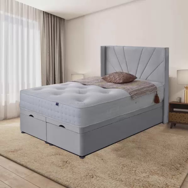 Samiraq Bedrock Bliss Ottoman Storage Bed with Wingback and Sun Raise Designer Headboard