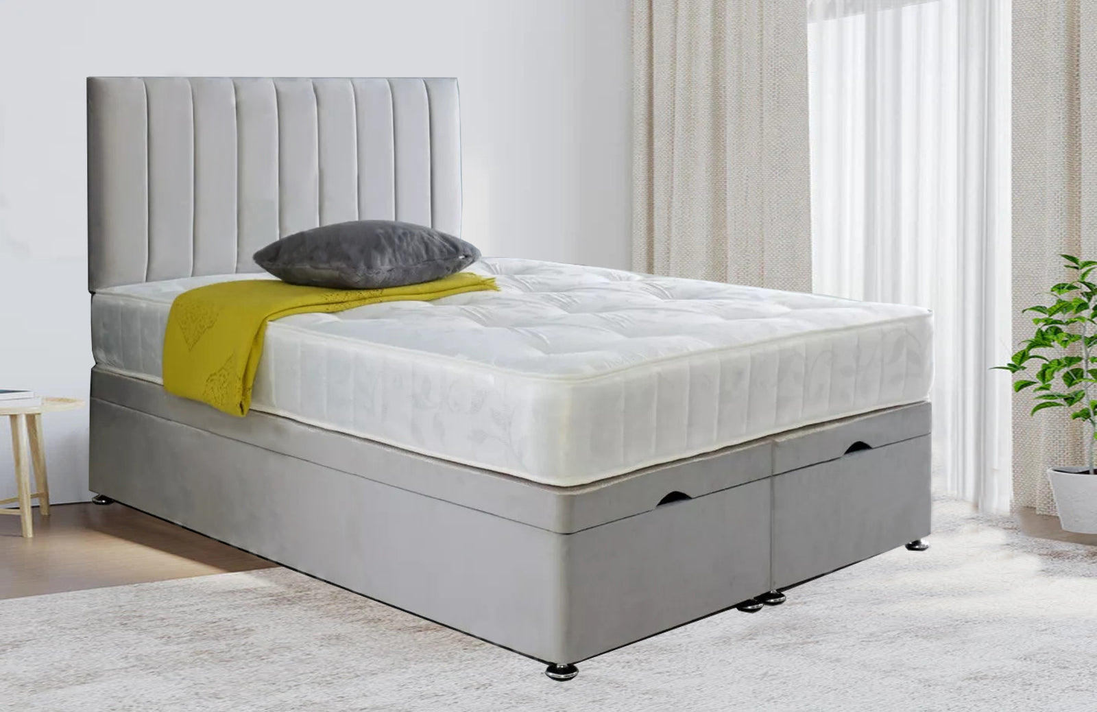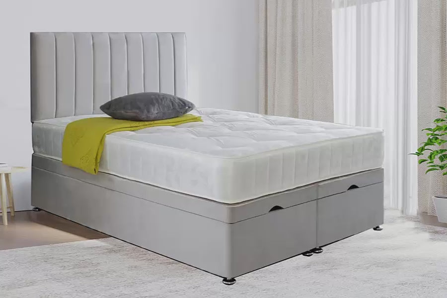 The Obsidian Oasis Ottoman Bed is available in various sizes, including Single, Small Double, Double, King, and Super King, ensuring a perfect fit for your bedroom.
