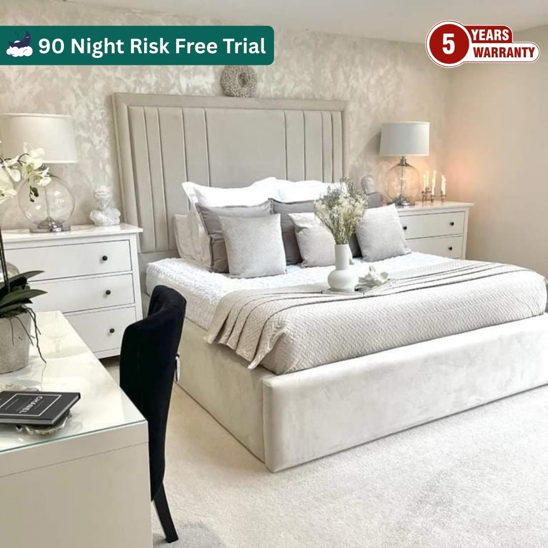 - Material: Crafted from plush 1200 GSM velvet, the Spanish upholstery offers a soft and opulent finish that enhances the overall aesthetic of your bedroom.